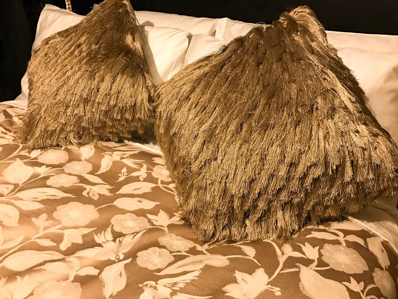 Sleekly appointed in opulent black and gold, the Miles Davis Room takes inspiration from the pioneering jazz musician’s inimitable style. From glossy patent leather furnishings to fringed upholstery – tactile textures interplay to create an ambience of cool, accompanied with a four poster bed.
